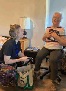 At Brentwood House long-term care, social worker Stephanie Stanton (pictured here with resident, Myrna) describes the delicate balance between giving and receiving. “We give so much in many areas of our lives, so for some people, receiving can feel vulnerable or uncomfortable,” she says. One of the residents she supports, Myrna, often declines help, insisting, “I have everything I need, dear.” But when Myrna ran out of toothpaste, deodorant, and moisturizer—with no access to funds or family support—Stephanie requested support via to the Resident-in-Need Fund.